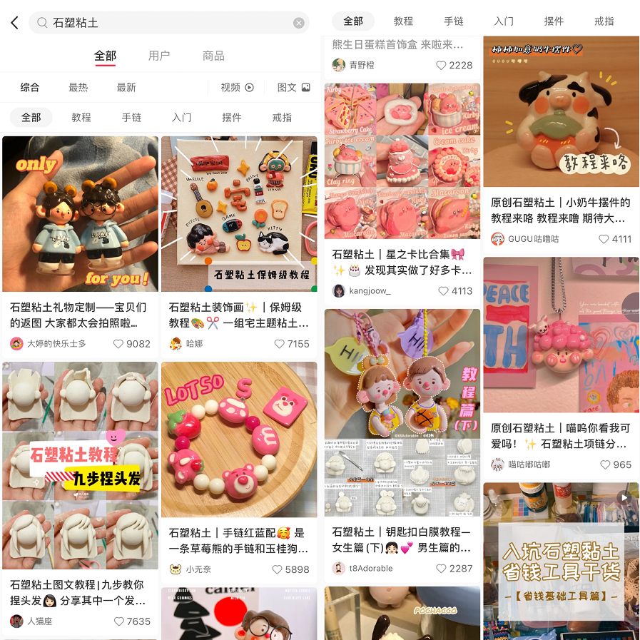 石塑粘土在小红书上也颇受欢迎,相关笔记数量超过39万篇。