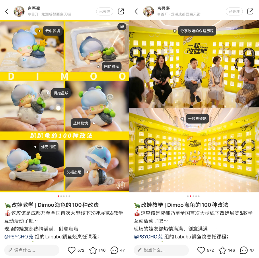 像这样以泡泡玛特旗下IP形象为主角的改娃笔记数量在小红书上至少18万篇。