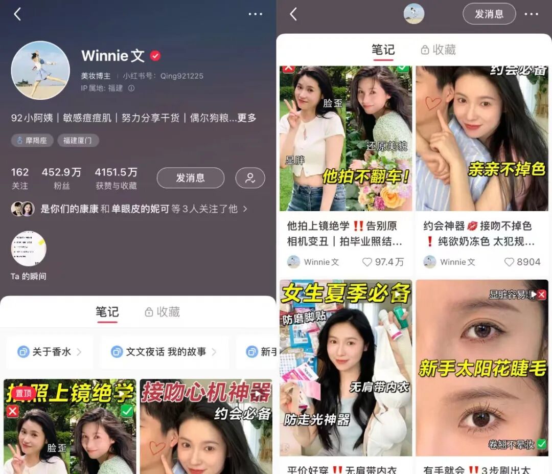 从2018年的一条拍照攻略开始,5年时间,“Winnie文”在小红书积累了448万粉丝,全网粉丝破千万,也曾在2020年被评选为B站百大UP主。