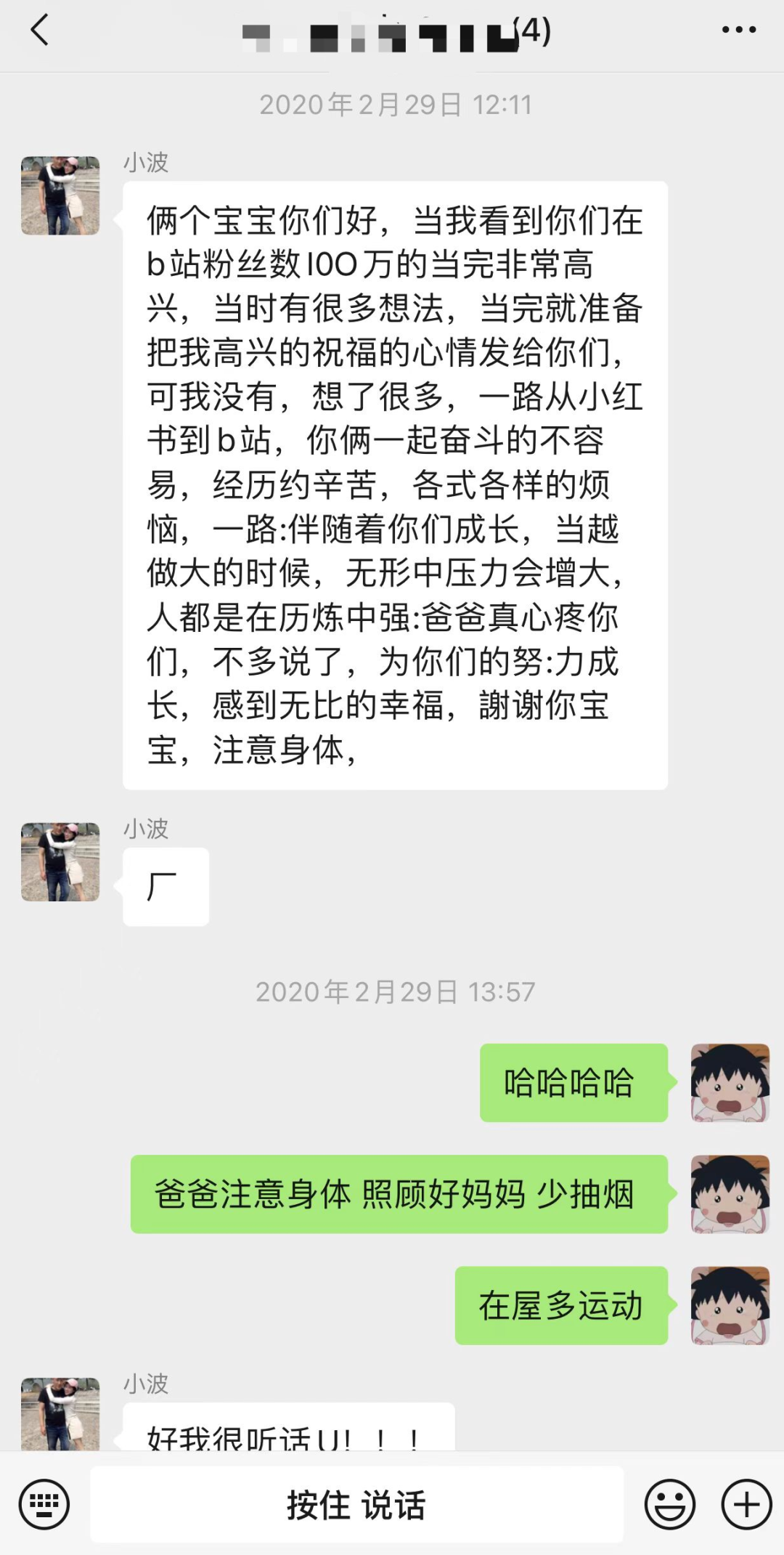 B站粉丝100万时,爸爸给“Winnie文”发的信息