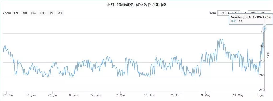 搞了一系列营销活动,小红书App的下载量自然水涨船高。小红书在App Store的排名来看,今天上午已经上涨到了33名,而这一成绩是小红书今年以来的最高排名,足以见得其收获的效果。
