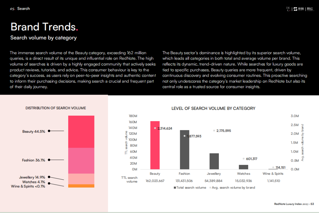■ 美妆品类搜索量超1.62亿次,这源于其在小红书上独特而强大的影响力;