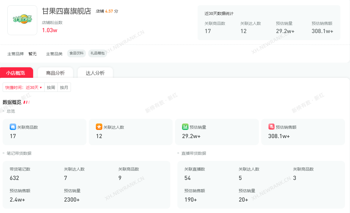 新红数据作为专业的小红书电商数据分析工具,通过四大功能模块——直播监测、商品数据、小店数据和品类数据的整合应用,为品牌提供了一站式解决方案。