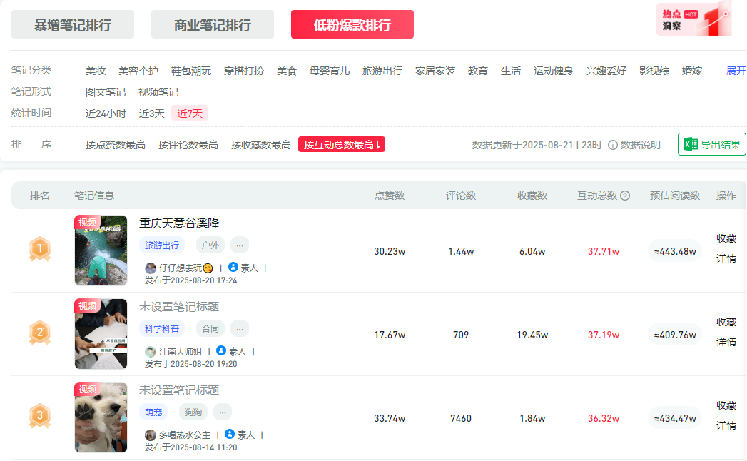 利用低粉爆文榜(粉丝<5000)可以复制高转化内容模型4。结合用户评论关键词优化产品描述和推广话术,根据不同内容形式(笔记、视频、直播)特点分配资源和优化策略。