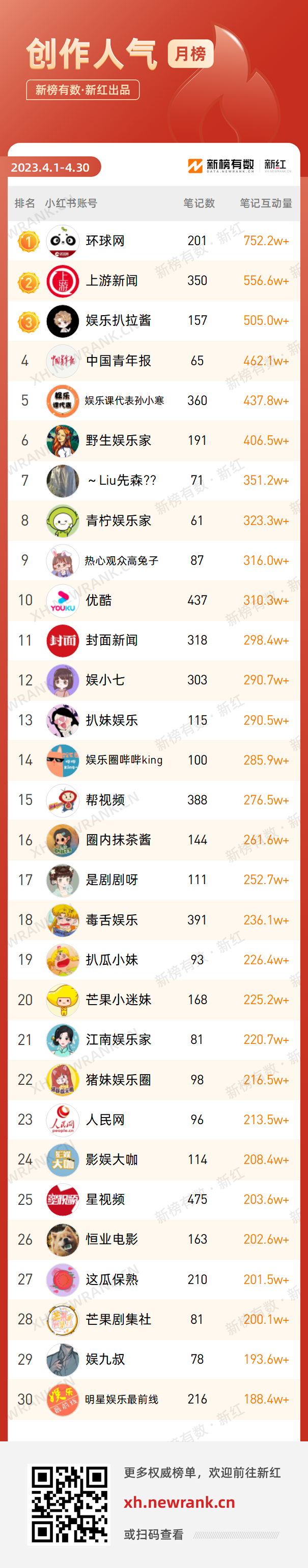 以上就是本期月榜的部分内容,如果你也想打造爆款内容,实现粉丝增长,请前往新红官网 xh.newrank.cn 了解更多。